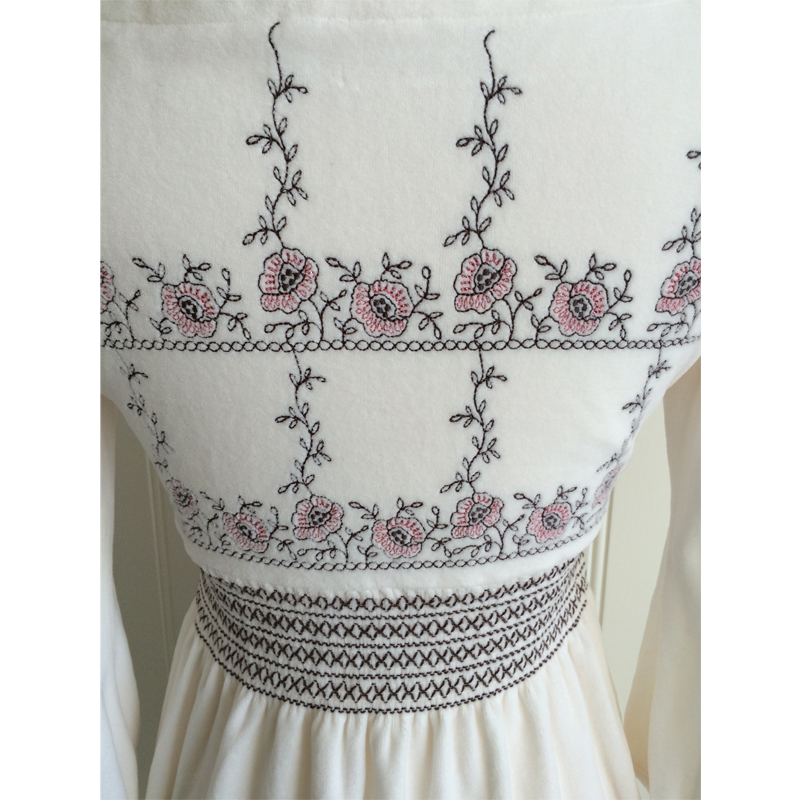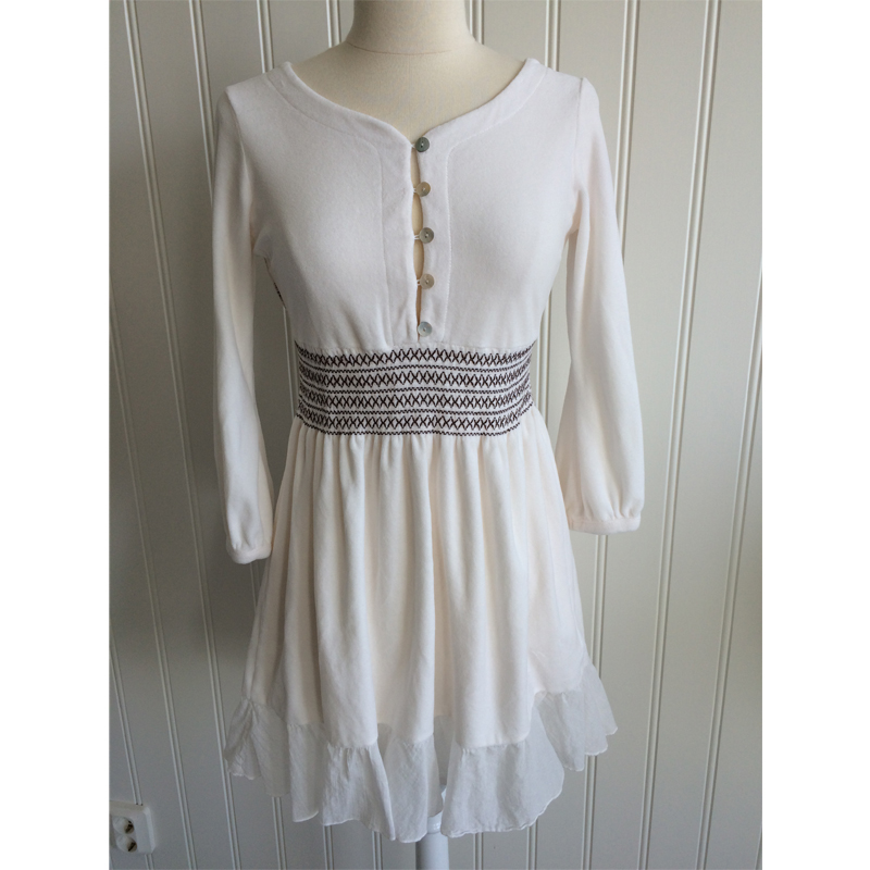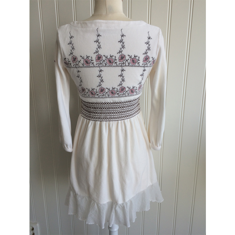 Söt creme-vit velour klänning/tunika med fina broderier på ryggen från Odd Molly! Obetydligt använd i storlek 1.