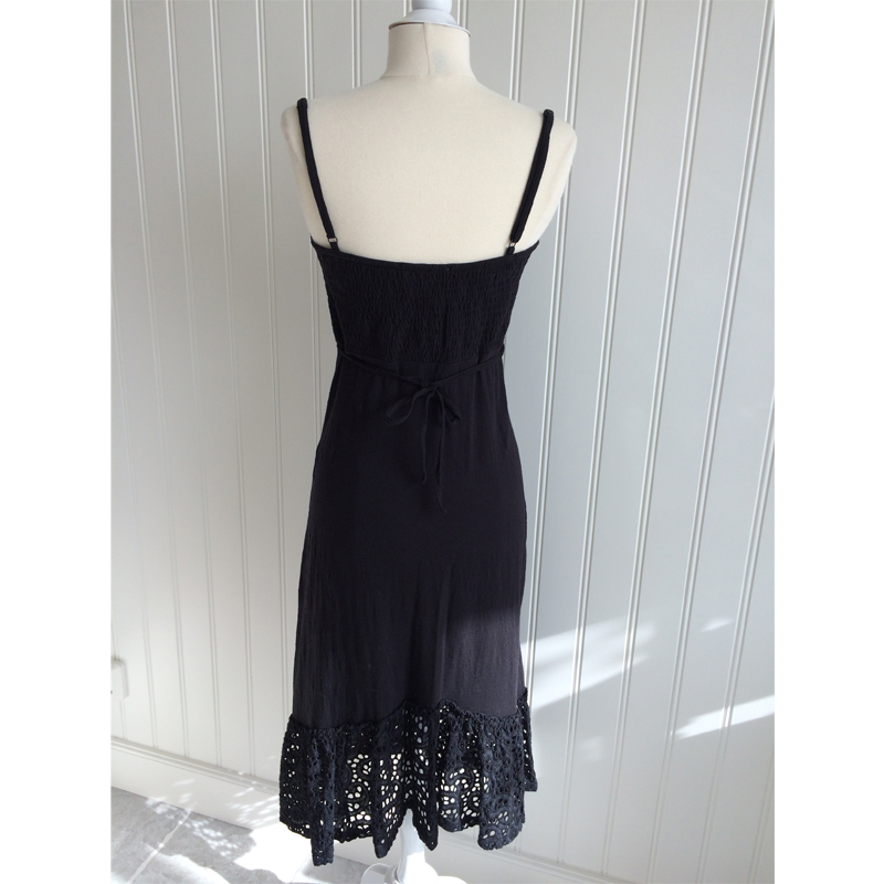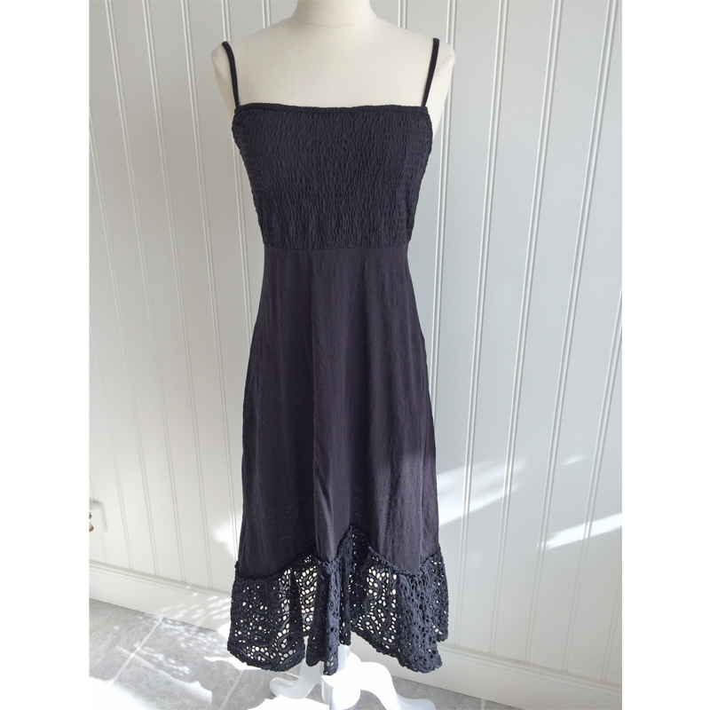 Härlig svart sommar klänning i bomull från Odd Molly! Obetydligt använd, men har ett litet hål framtill längst upp i smocken, i storlek 1!