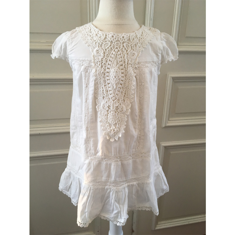 Vacker vit klänning med spetsdetaljer från Kappahls Vintage stories kollektion. Aldrig använd och i väldigt gott skick i storleken 92.