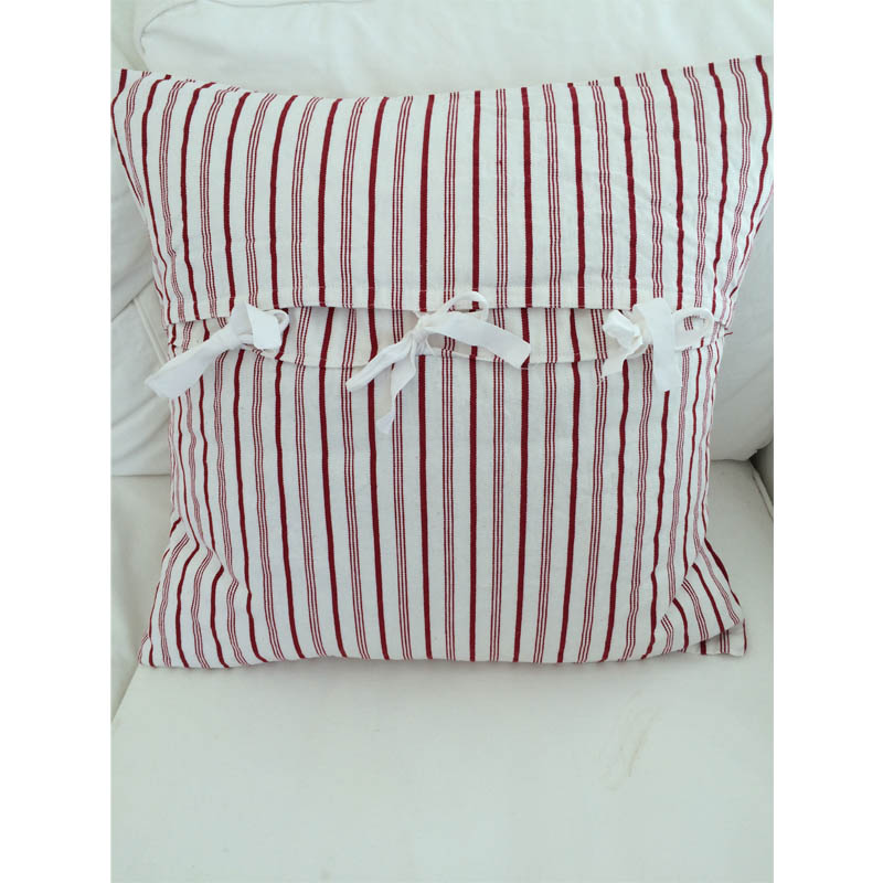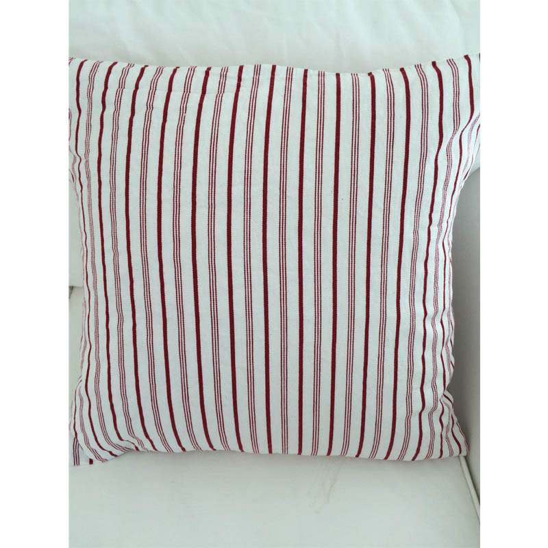 Randigt kuddfodral i bomull i färgerna vitt och rött från Nyblom & Kollen! Obetydligt använt, tvättat och i gott skick i storleken 50 x 50 cm.