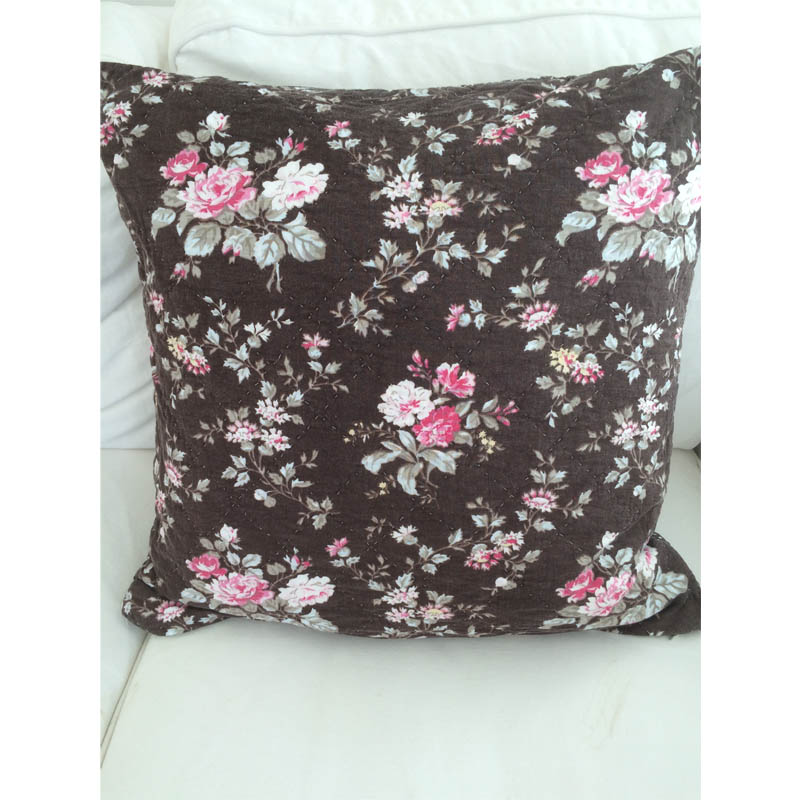 Kviltat kuddfodral i bomull med brun botten från GreenGate! Obetydligt använt, tvättat och i gott skick i storleken 50 x 50 cm.